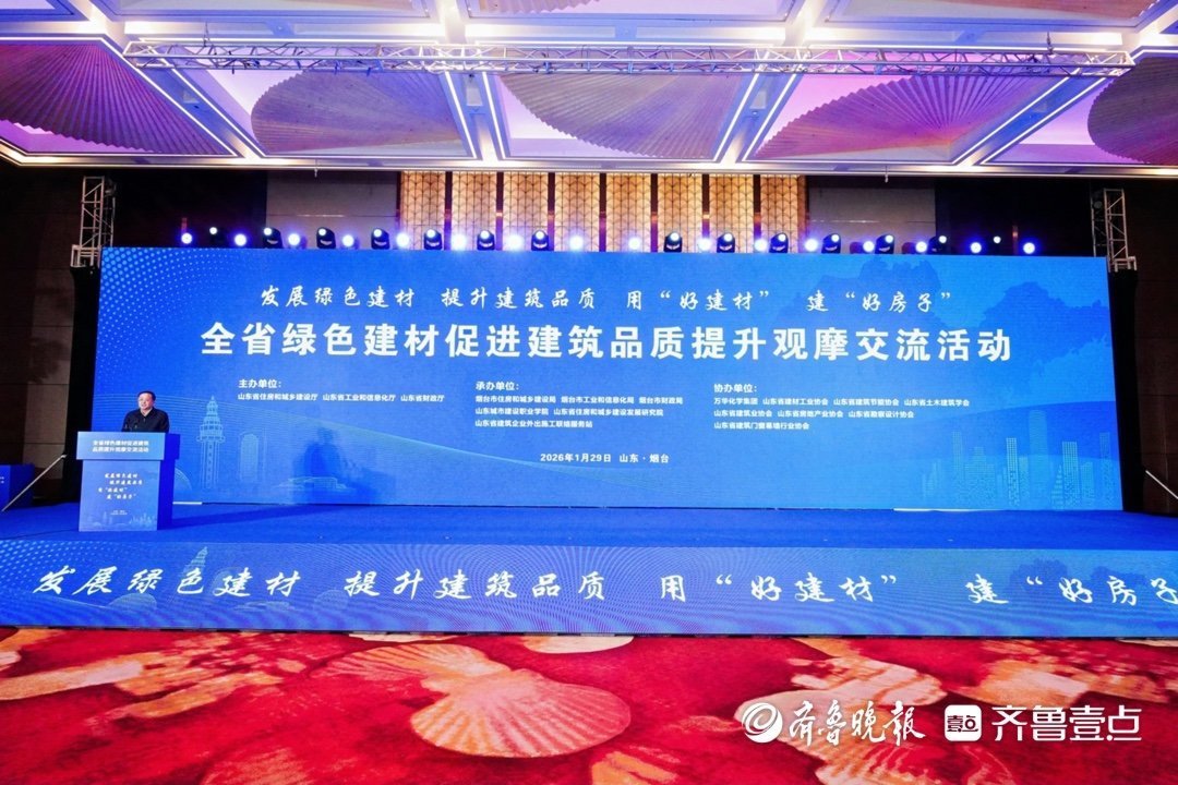 用“好建材”建“好房子”,1月28日至29日,山东省住房和城乡建设厅、省工业和信息化厅、省财政厅联合举办全省绿色建材促进建筑品质提升观摩交流活动。活动汇聚全省住建、工信、财政系统及行业企业代表,通过现场观摩、产品展示与专题交流,共探绿色建材发展新机遇,共绘建筑品质提升新蓝图。